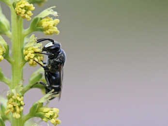 In Britain there are around 65 species of bee in the genus Andrena, making it the largest bee genus in Britain. These bees are quite variable in size ranging from 5-17mm long but all nest in the soil. They have short pointed tongues and are characterised by the grooves running down the inside of their eyes. These mining bees collect pollen on their hind legs.