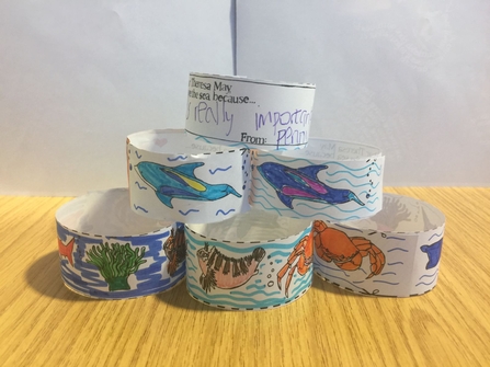 1500 children and young people from all around the UK took the time to colour in a pair of paper friendship bracelets explaining why they each loved the sea, keeping one to wear with pride and sending the other one to us here at The Wildlife Trusts. We then joined them together to make our "Blue Belt" - creating a chain over 100 metres long!