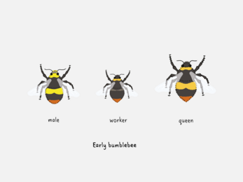 The early bumblebee is relatively small, with distinctive lemon-yellow bands on its thorax and abdomen, and an orange tail. It is found throughout the UK in all kinds of habitats. It is a small bee and an important pollinator of soft fruit, such as raspberries and blackberries.