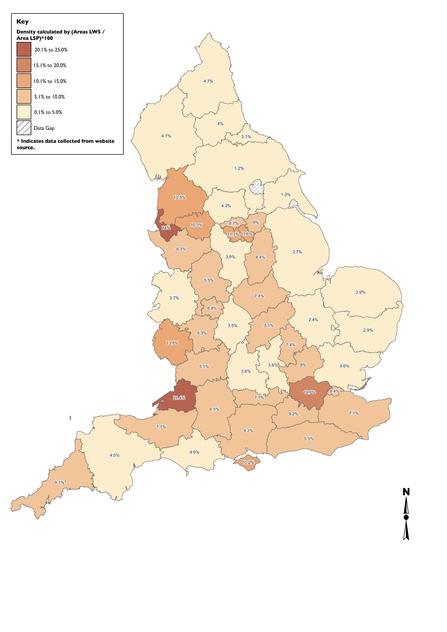 Local Wildlife Sites can be found on public and private land, owned by individuals or organisations including businesses, charities, schools and estates. Local Wildlife Sites cover around 5% of England and based on the responses from Local Wildlife Site partnerships, there were a total of 44,240 LWS reported, covering a total of 750,475 hectares (ha).