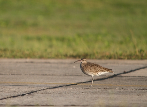 The whimbrel is very similar to the curlew, but a little smaller and with a striking face pattern. Its eerie call is a series of seven whistles; listen out for it around the coast as its passes through on migration.