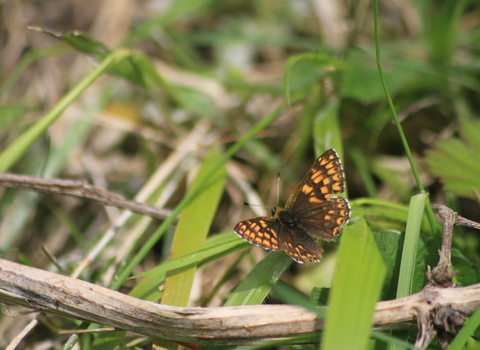 The Duke of Burgundy is a small butterfly that takes to the wing in mid-to-late spring. They can be found on chalk and limestone grasslands with some slopes or scrub to provide shelter, or sometimes in woodland with large rides, glades and clearings. Their numbers have crashed in recent decades. Since the 1980s, their distribution has shrunk by around 89%; they are now only found in a few parts of England.Males are very territorial. They defend small, sunny patches a few metres wide. They'll often perch on a plant, waiting to chase off rivals or follow any females that fly by. After mating, females flutter from foodplant to foodplant, laying their eggs on the undersides of leaves.