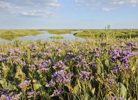 Common sea-lavender grows in muddy, salty pools or saltmarshes along the coast. Its flowers range in colour from blue through to lilac and pink, and can often be seen densely carpeting the ground from July to October. Garden varieties of this plant are popular with flower arrangers as the flowers can be dried and keep their shape and colour.