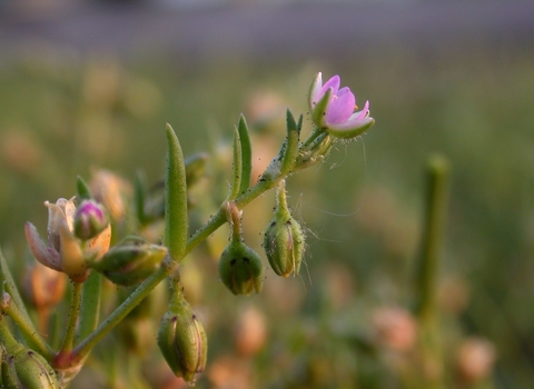 Traditionally a coastal species, Lesser sea-spurrey has spread inland, taking advantage of the winter-salting of our roads. Its pink-and-white flowers bloom in summer.